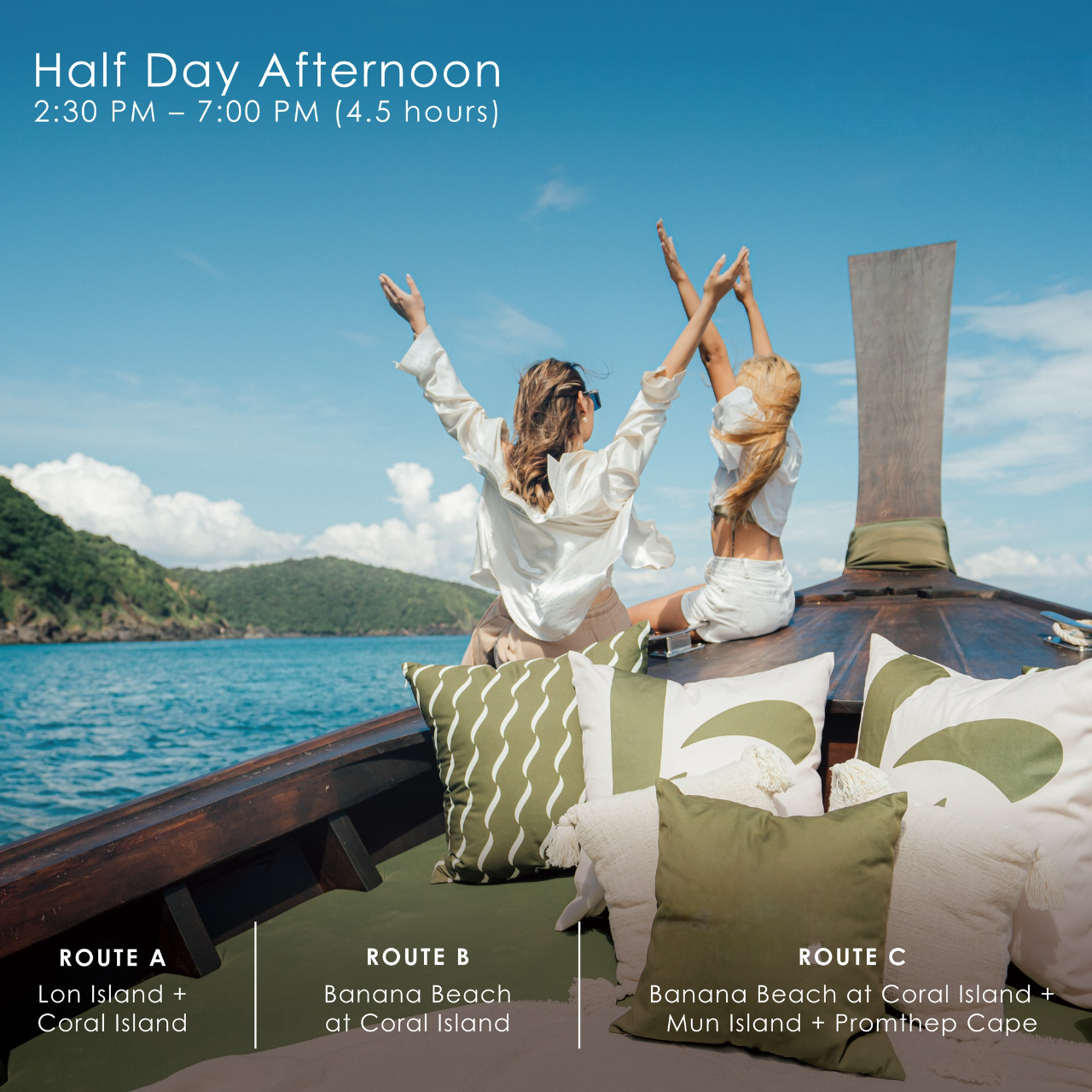 Coral Island + Prom the Cape Sunset (14:00 – 19:00) – THB 9,500 per boat